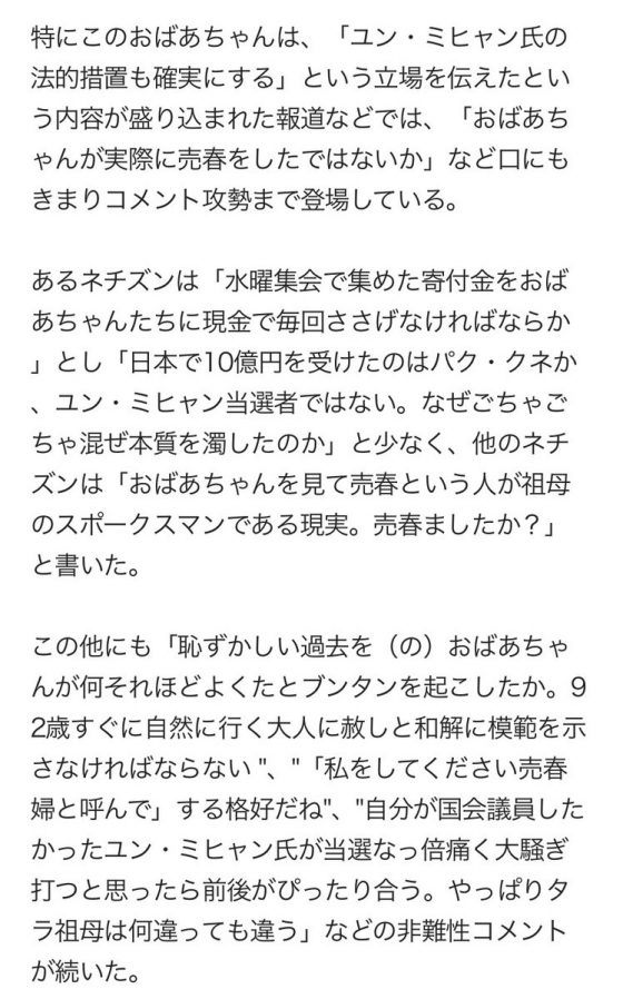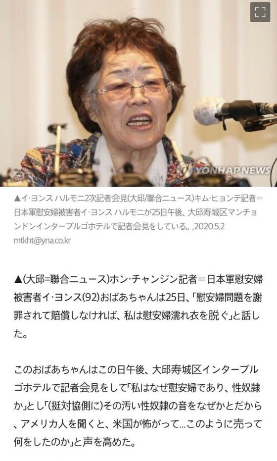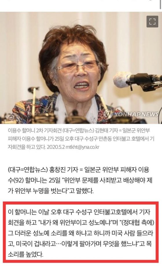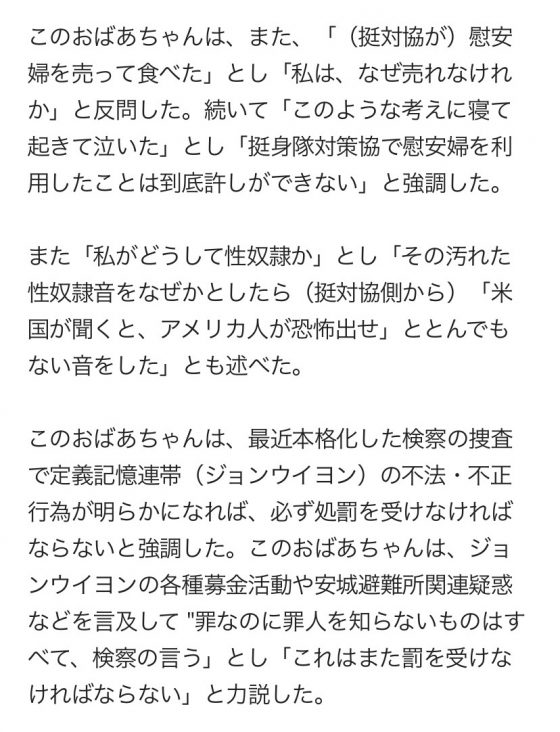 直訳だと理解が難しいけど、この記事はタイトルも「李容洙おばあさん"性奴隷という言葉をなぜ使うか聞いたら、アメリカ人が聞くからと…"」 pic.twitter.com/7MVeMssWQw