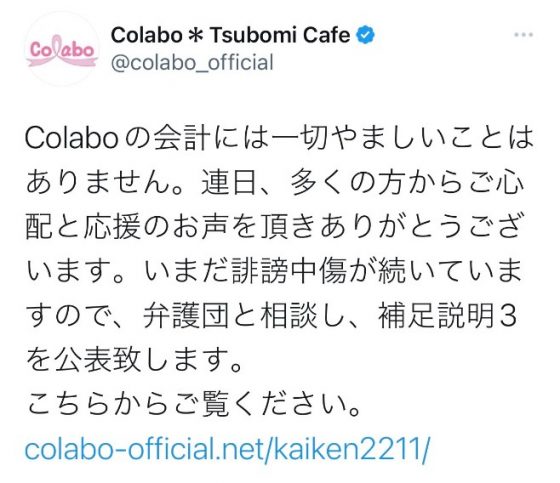 colaboの会計については「なんら不正と疑われる様な事実は一切ない」と弁護団が明言しています。