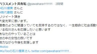 フェミニスト 石川優実さん今まで#KuTooの活動をしてきた事を忘れてダブスタな投稿してしまうw